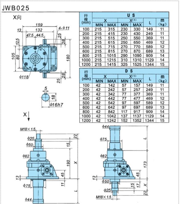 JWB型(普通滾珠絲桿型),適用于高速,高頻率和高性能的裝置中,主要構(gòu)成部件為精密滾珠絲桿副與高精度蝸輪蝸桿副。